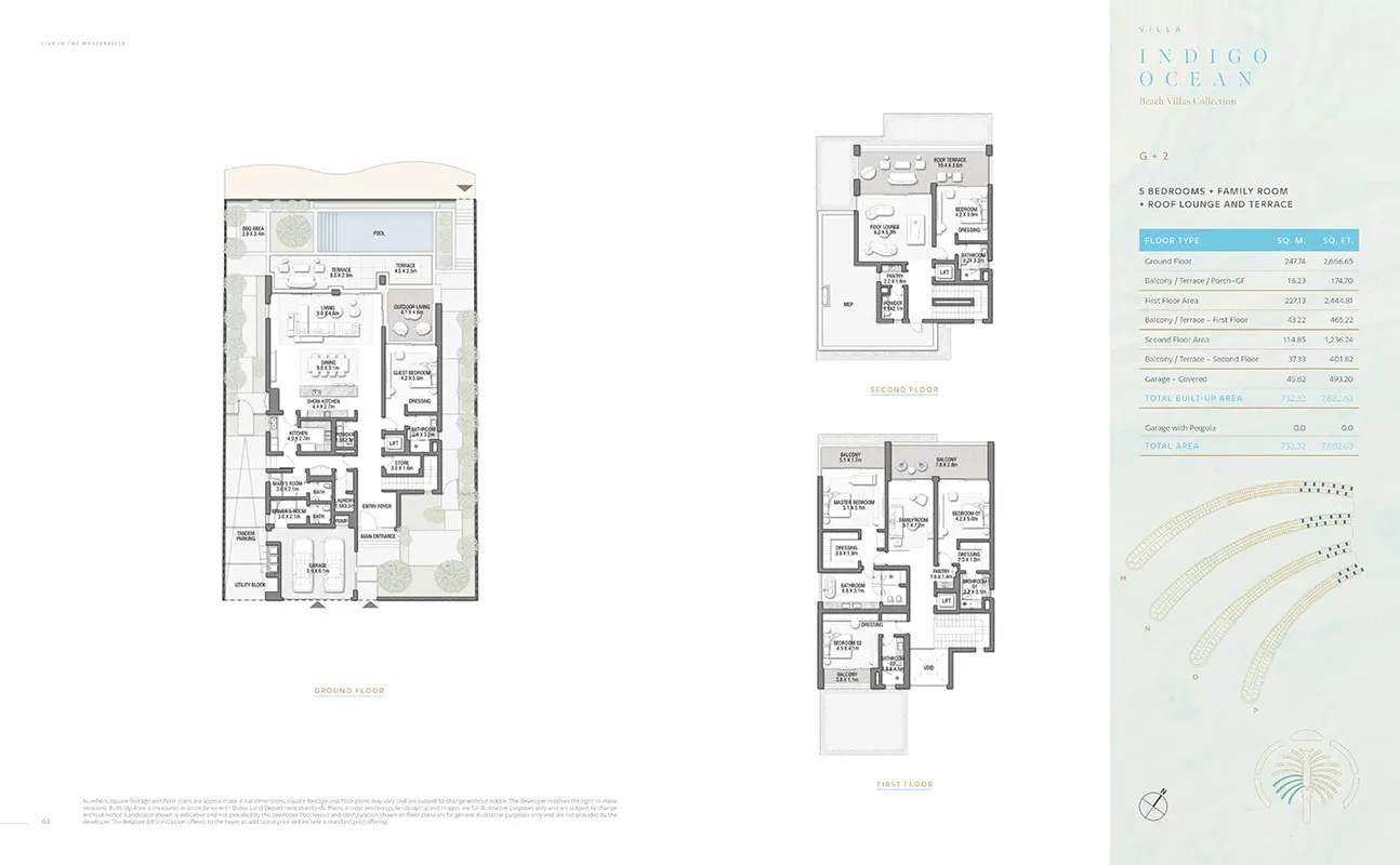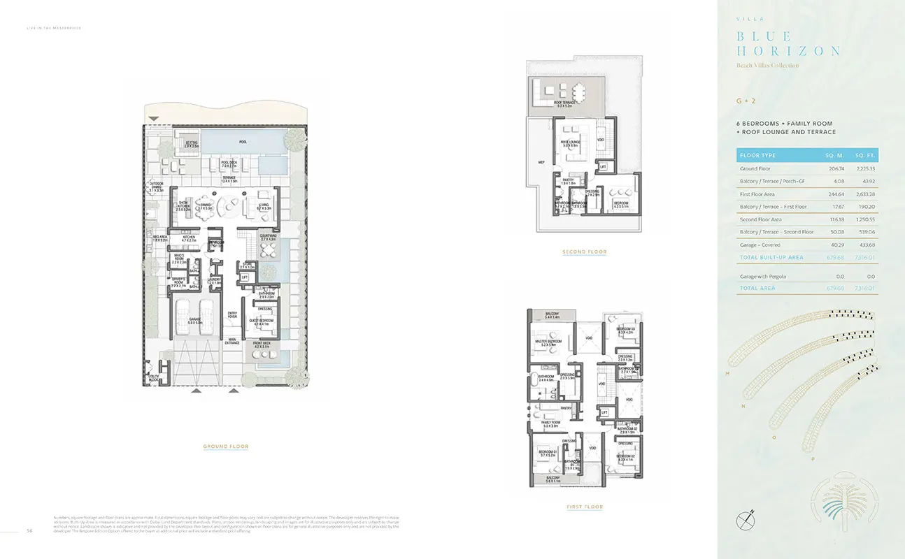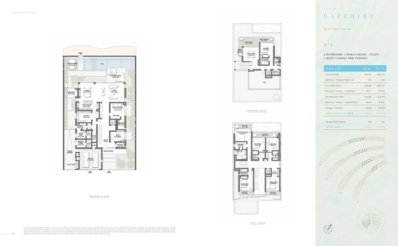 Nestled within Palm Jebel Ali's embrace, the Beach Villas Collection offers an exclusive waterfront experience. These 5-6 bedroom villas, each with its unique design, provide a harmonious blend of indoor and outdoor living. With direct beach connectivity and lush greenery, these villas redefine seaside luxury. Imagine waking up to the gentle lull of the waves and enjoying your morning coffee on your enchanting beachfront terrace.