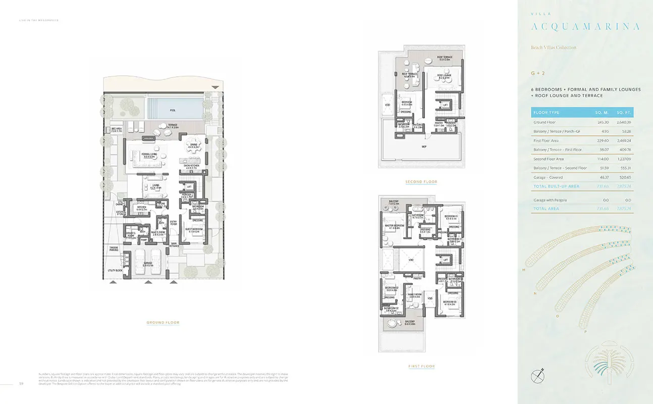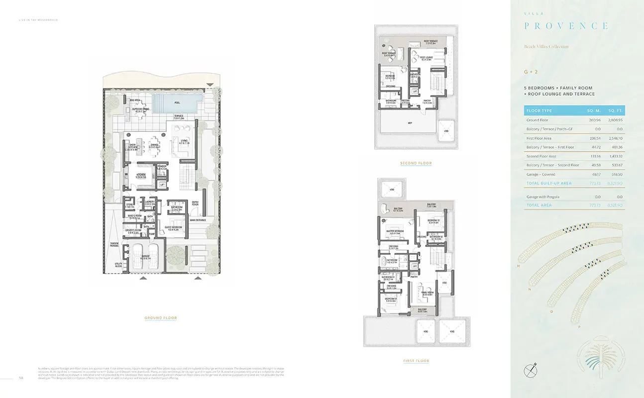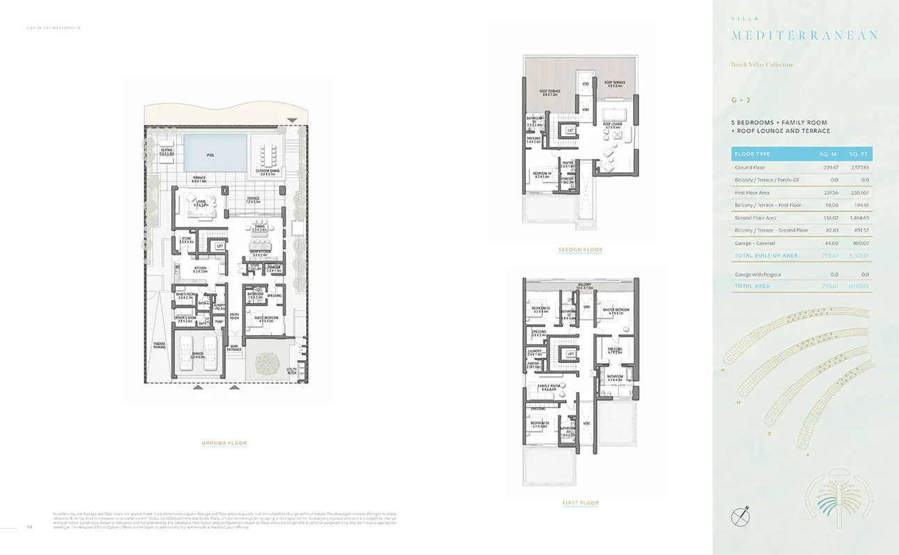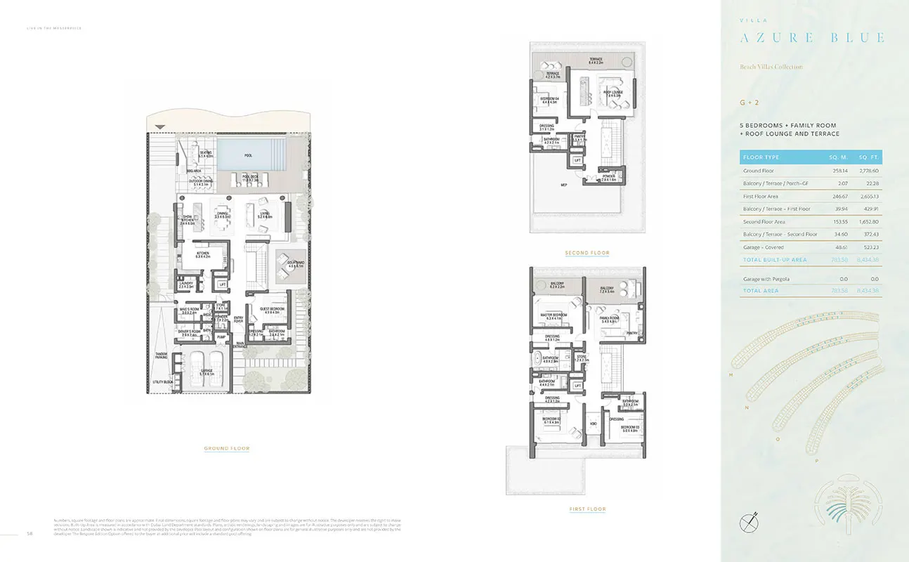 Nestled within Palm Jebel Ali's embrace, the Beach Villas Collection offers an exclusive waterfront experience. These 5-6 bedroom villas, each with its unique design, provide a harmonious blend of indoor and outdoor living. With direct beach connectivity and lush greenery, these villas redefine seaside luxury. Imagine waking up to the gentle lull of the waves and enjoying your morning coffee on your enchanting beachfront terrace.