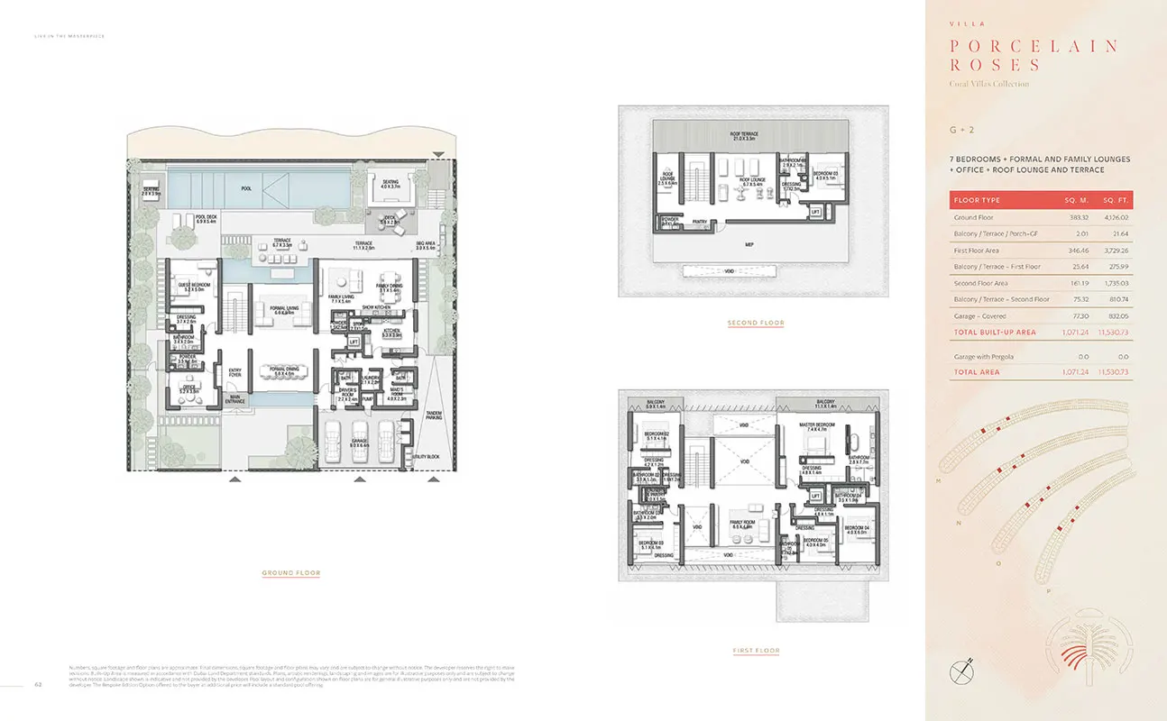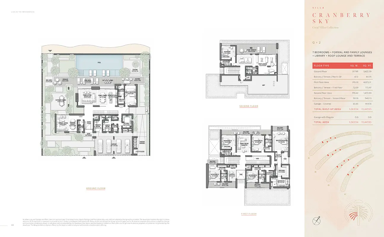 For those seeking unparalleled grandeur, the Coral Villas Collection is a testament to passion and perfection. These 7-bedroom villas seamlessly connect you with the sea, sky, and beachfront. With spacious living areas, a formal living space, and even provision for a guard's house, these villas offer an incomparable lifestyle. Experience the prosperity of life flowing indoors and outdoors in these stunning Coral Villas.